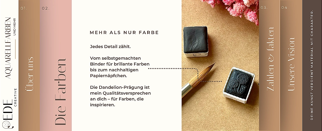 Wasserfest, nachhaltig, schön. Aber vor allem: voller, gleichmäßiger, ästhetischer. Die Dandelion-Prägung steht für Qualität und Liebe zum Detail.