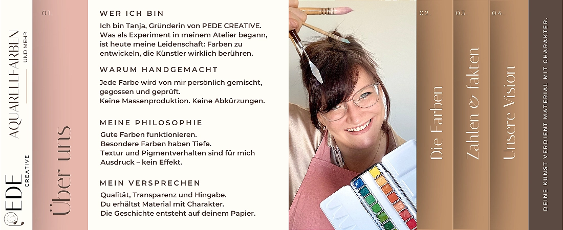 Mit PEDEcreative möchte ich einen Raum schaffen, in dem Du den Alltag losl ässt und Deine Kreativität entdeckst. Jede handgemachte Farbe und jeder Kurs ist ein Stück meiner Leidenschaft.