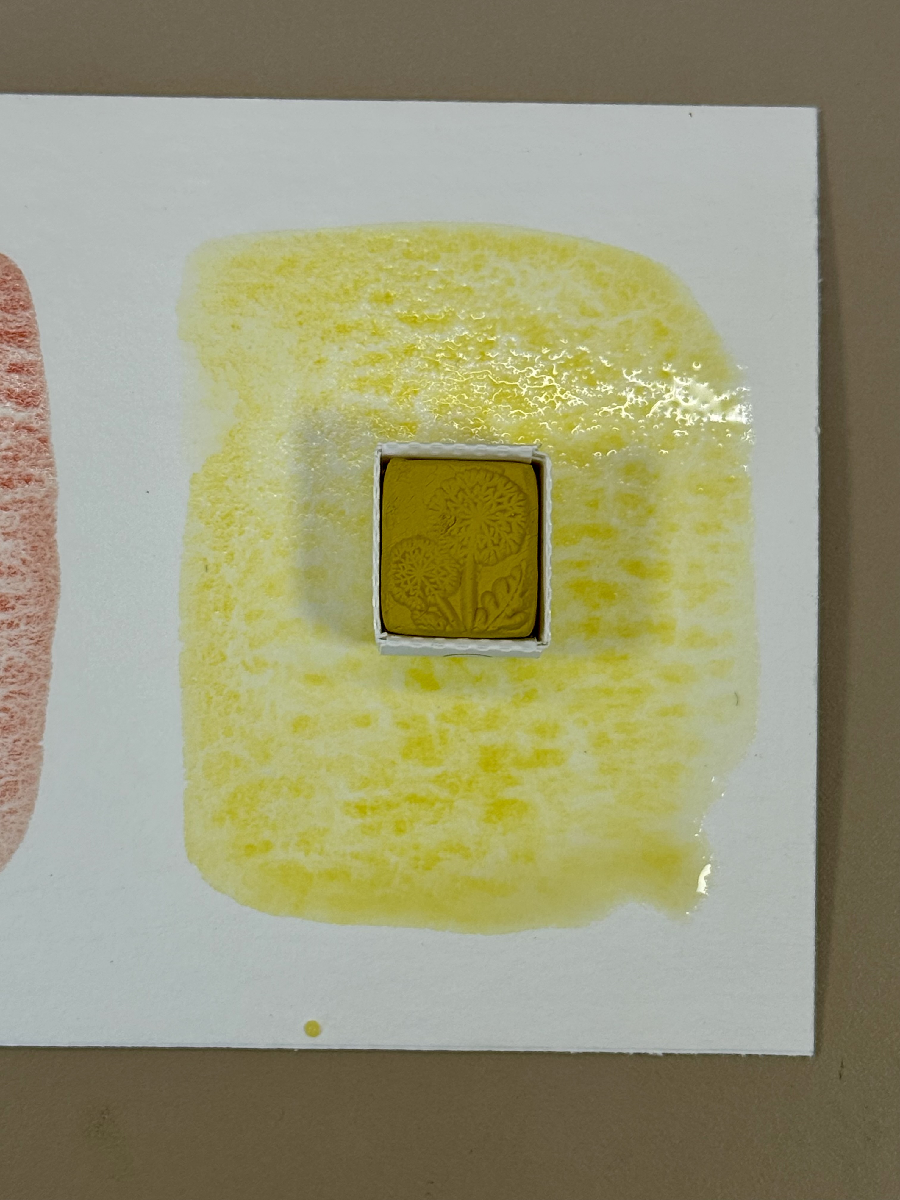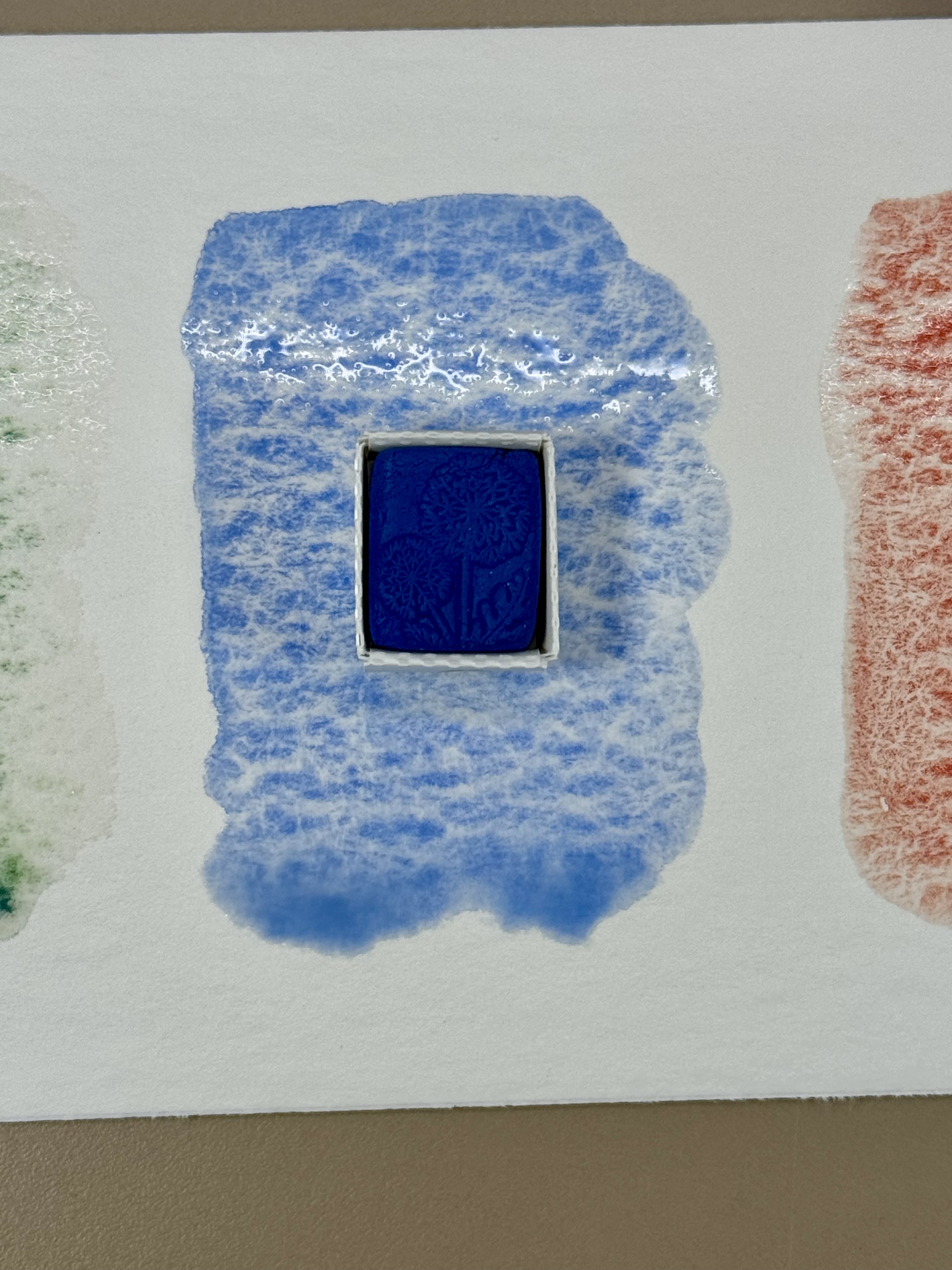 Die vier Farben kommen liebevoll verpackt als Miniset mit Banderole zu dir. Jede Farbe sitzt in einem stabilen, handgeformten Papiernapfchen mit Farbstempel und Informationen.