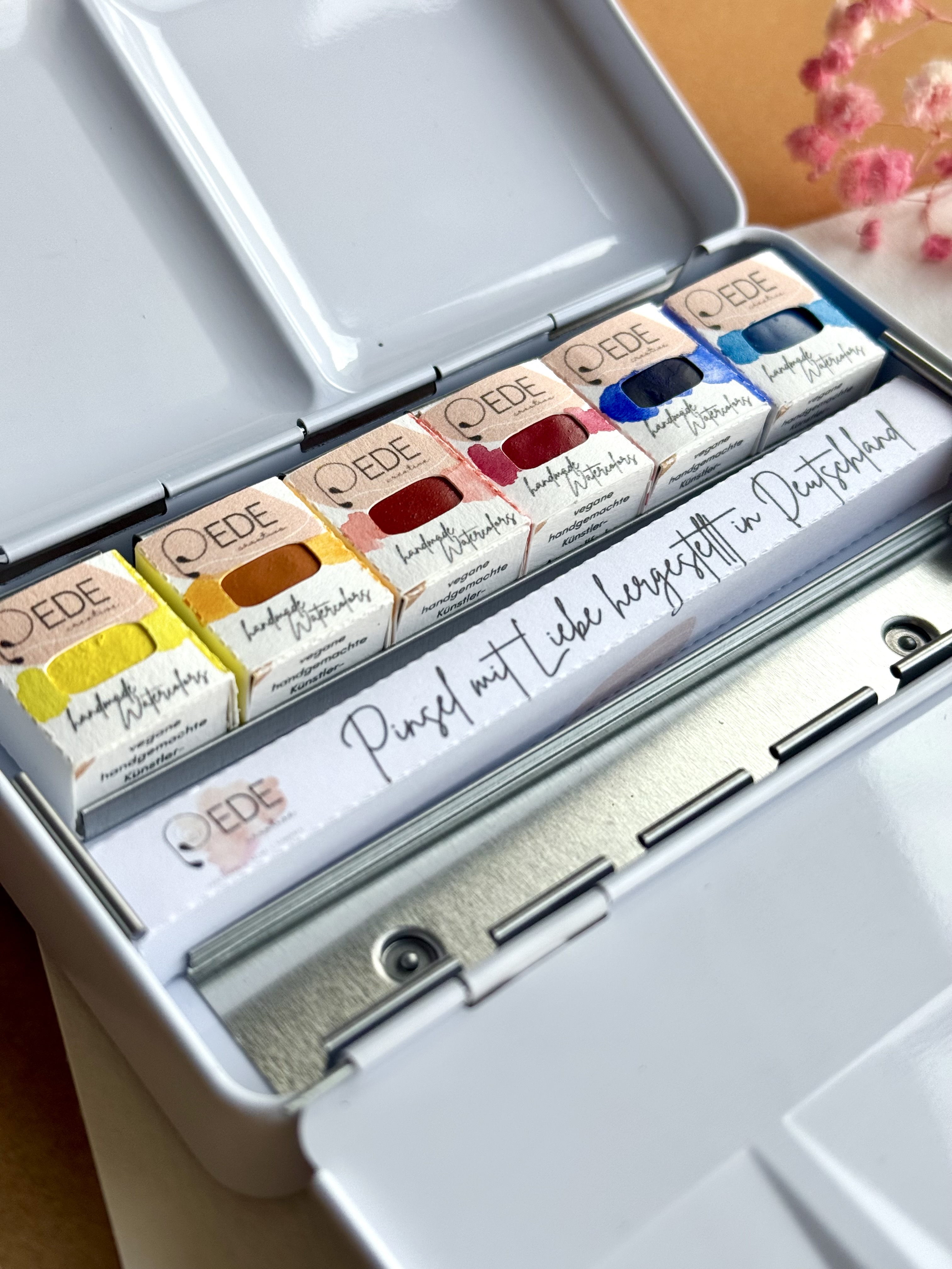 - ✓ 6 handgemachte PEDEcreative Aquarellfarben (Split-Palette)