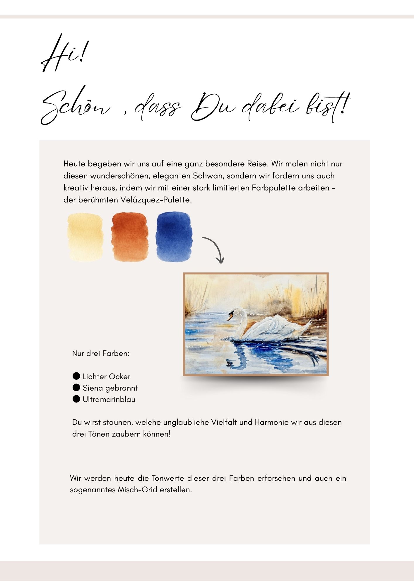 Tauche ein in die Welt der reduzierten Farbpalette – mit dem Velázquez-Schwan Malkit malst du einen eleganten Schwan in zarten Herbsttönen, ganz ohne Farbchaos.